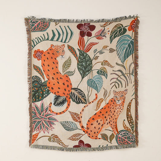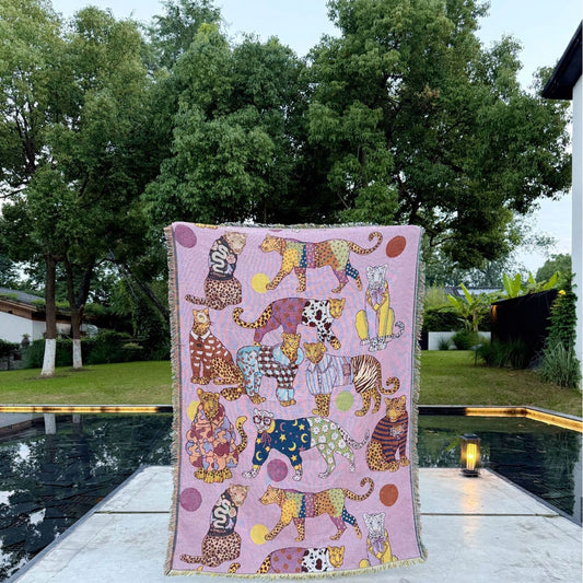 GiftoLuck Pink Hawaiian Leopard Jacquard Woven Tapestry Throw Blanket with Tassels