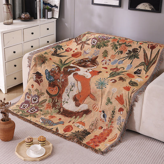 GiftoLuck Floral Garden Jacquard Woven Tapestry Throw Blanket with Tassels for Sofa Decor